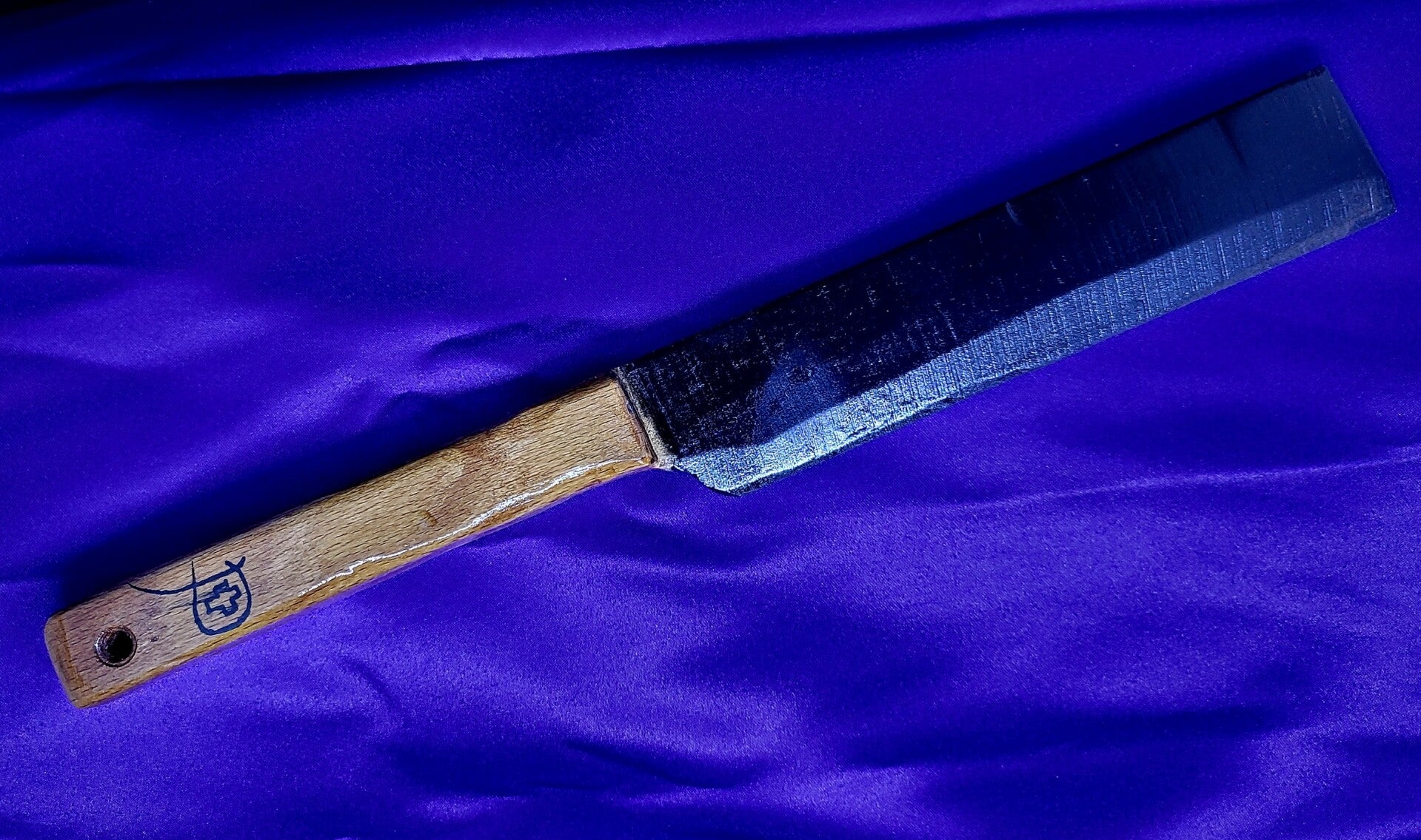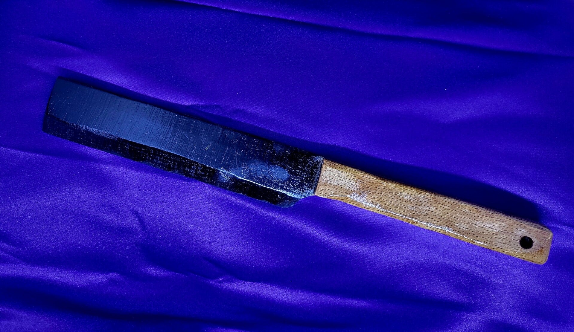 Couteau en hêtre lame de style Nakiri, peinte en bois, manche en hêtre vernis.